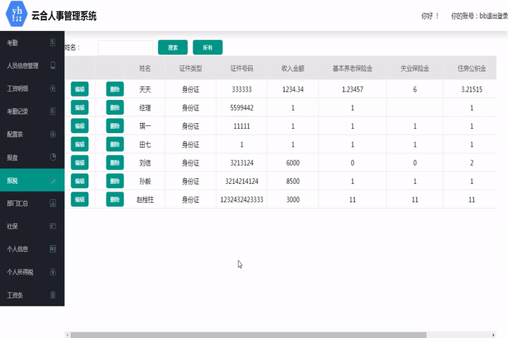 此模塊是工資明細的細分,從工資明細模塊中獲取數據,方便修改每位員工的繳稅金額。可根據姓名查詢。